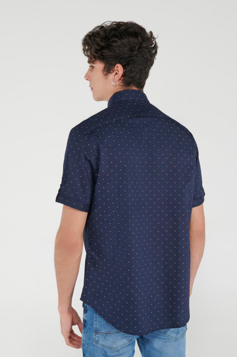 Camsia para hombre, en tela estampada con abertura en mangas y botones