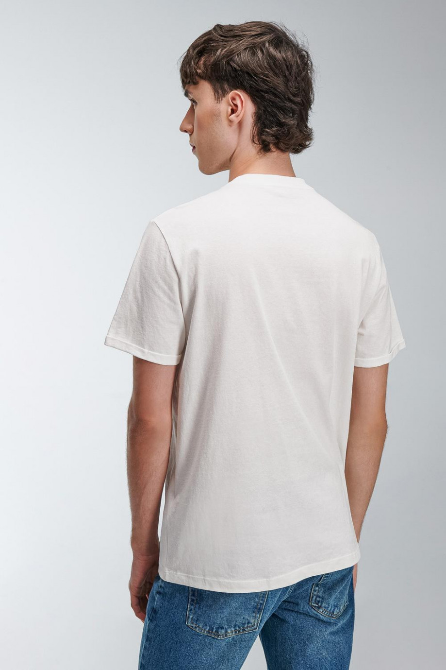 Camiseta manga corta, unicolor para hombre con costura decorativa en cuello frente.