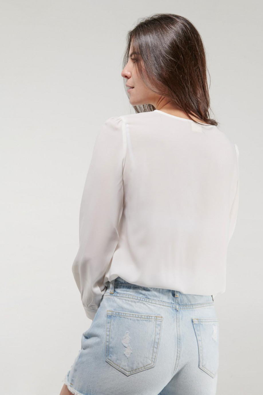 lusa para mujer en tela fluida, unicolor, manga larga, leve fruncido en mangas.