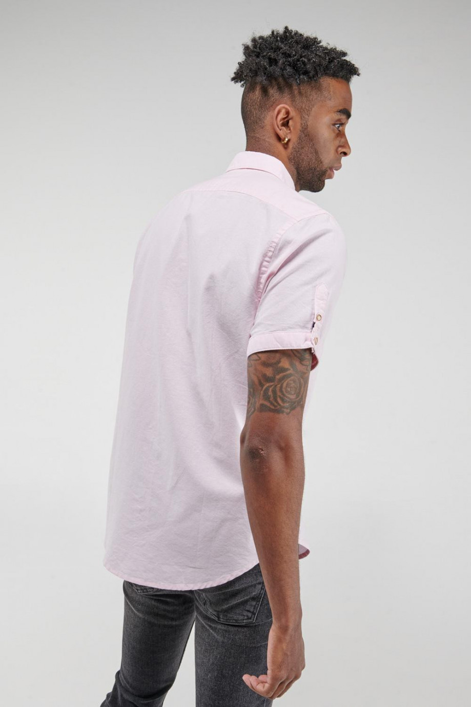 Camisa para hombre, en tela oxford unicolor con bolsillo delantero y marquilla decorativa en frente